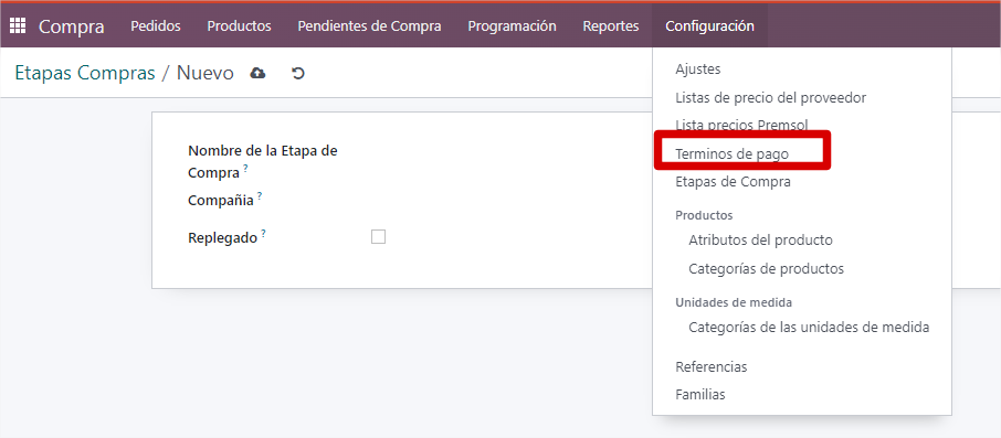 Permite crear etapas personalizadas para el seguimiento de los documentos de Compra.